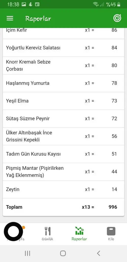 Neredesin yeni eşim.Yine ben lazerdekten geldikten sonra oluşan yorgunluğumla unuttumsabah çeyrek ekmek peynir öğlen 1 yumurta haşlanmış 5 siyah zeytin çeyrek ekmek akşam 5 kaşık bulgur pilavı birkaç tavuk parçası koo ve bacak egzersizi yapıldı