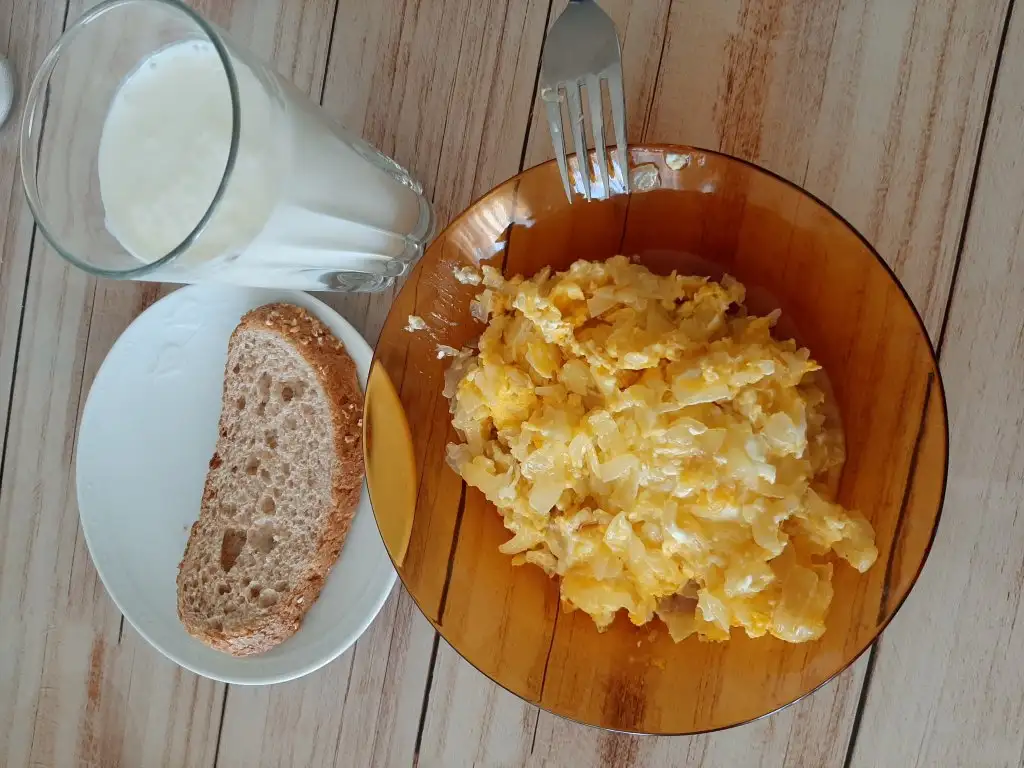 Soğanlı yumurta (1 soğan +2 yumurta biraz sıvıyağ ve de tereyağ )