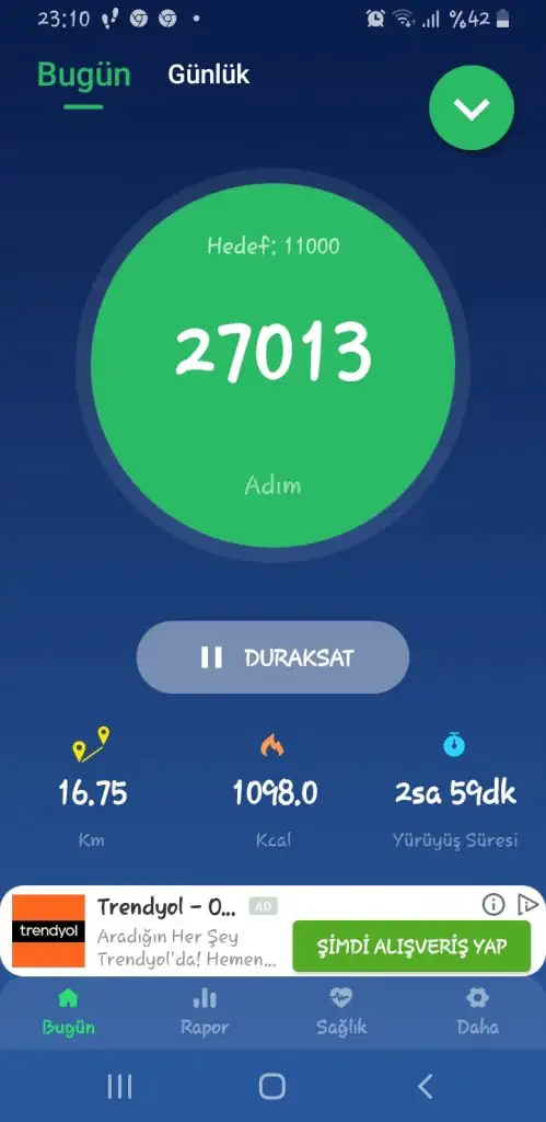bir 27 bin adım daha maşallah sizeSabah 12 de