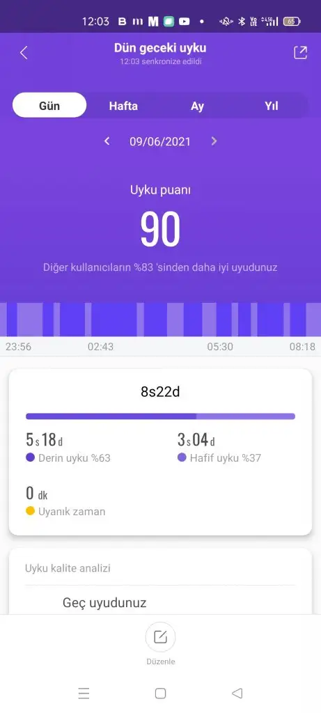 normalde 1.5 saat uyuyunca amma cok uyumusum diyordum