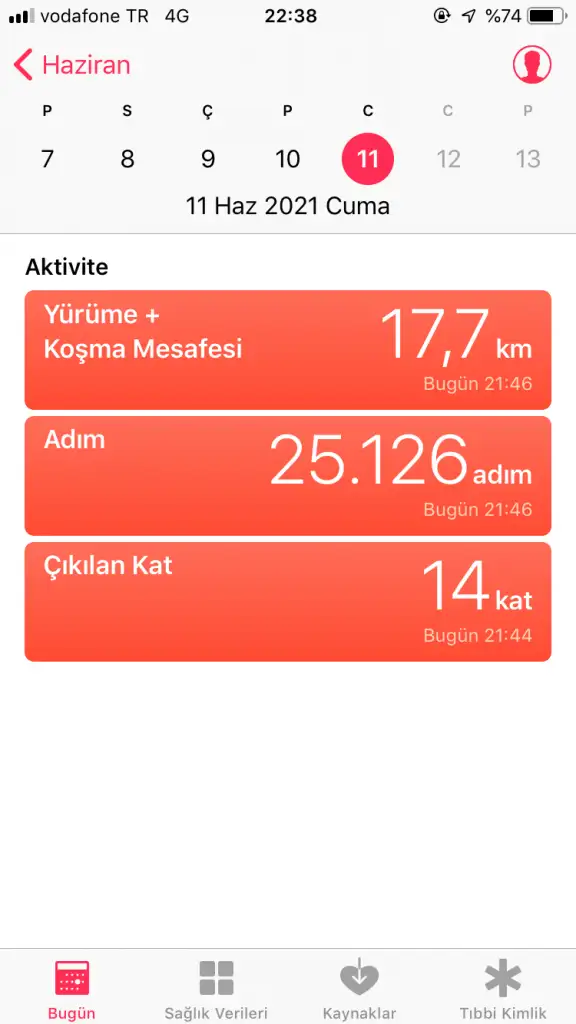 Bugünkü adım sayım. Yaptığım sporlar hariç. Tartı yüzünden izne çıktım resmen ya. Menüm de süper ama