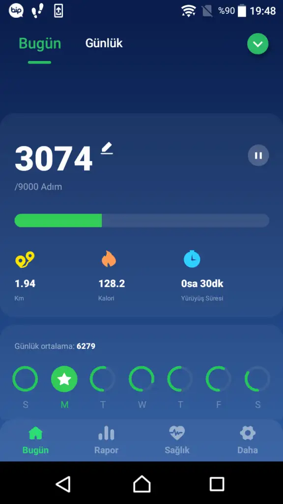 3bin adım sdce spor yaparken uzerimdeydi tel oyuzden bu kadar az =90p toplam =180 yaparsam yazarım Eki Görüntüle 2869259