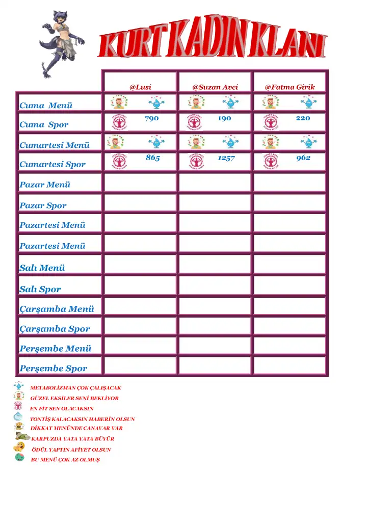 Lusi menün suyun hele sporun harika tebrik ederim.diğer sporları bu hafta boşver adıma odaklan.