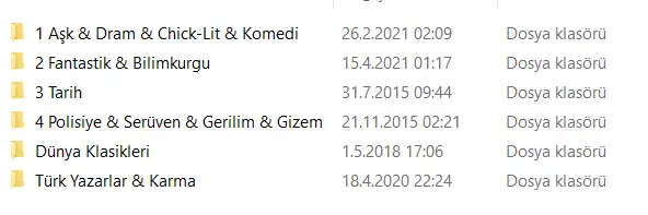 birde sınıflandırılmamış klasörümde 4000 yakın kitap mevcut nette bulduklarımı indiriyorum.