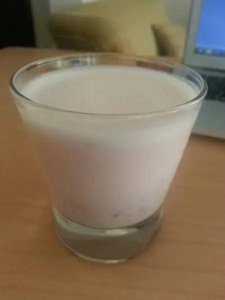 meyveli yogurdun icinde yarim seftali nektari 5 uzum ve 3 kiraz var