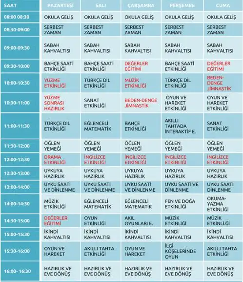 genelde bir hareketli bir yavaş etkinlik yaoılır.mesela sanat etkinliği arkasından eğlenceli matematik yerine ,sanat etkinliği serbest zaman sonrasında matematik olabilir.ya da müzik zaten hareketli hemen arkasından  beden denge olmamalı.4 yaş çocugu yarım saat neşeli matematik nsıl olabilir bilemiyorum.yani yarım saat  masadamı oturuyorlar ,ders işleyiş içeriğini sormanızı öneririm.