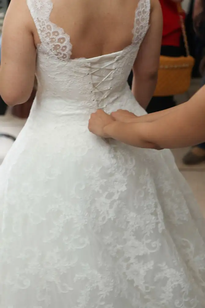Gelinliğim 40-42 bedene uygun, arkadan bağcıklı, üst beden üzerinde küçük kristal boncuklar mevcut ve ağır olmayan çok sade komple dantel bir modeldir. Fatih Neslihan Platin modaevinde bir sene önce 3.200 liraya diktirildi, isterseniz arayıp sorabilirsiniz.