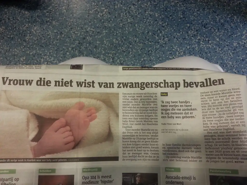 Marielle 44 yasinda Haarlem de oturuyo. Hamile oldugunu bilmiyo cunku ta 22 yasindayken doktorlar kesinlikle bebeginin olmayacagini soylemislerdi ona. Cunku yumurta kalitesi cok dusukmus. Mariella adetten kesilince menapoza girdigini dusunuyo ve uzerinde durmuyo. Sonra bir gun sancilarla ani su bosalmasi ve kanama yasiyo. Ne oldugunu anlamiyo tabiiki. Sancilarla tuvalette kivranirken klozetin icinden, iki kolu iki bacagi olan iki gozun ona baktigini goruyo:KK46:o_O:KK49: