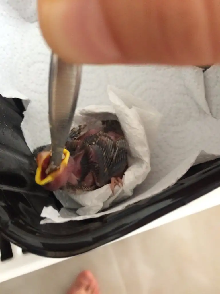 yeni de hamileyim zaten hersey benim icin ilk başlarda yeterince zordu .(bulantı, tiksinti vs) Hiç bir bilgim yok bi de yabani hayvan nasıl beslenir bilmiyordum.Neyse eve iki yavru geldi biri diğerine göre daha küçüktü. İnternetten izliyoruz işte ne yerler ne yapabiliriz derken yumurta haşlayıp sarısını cımbızla vermeye başladım .ilk sabah uyanıp ikisini besledim ama ne yazıkki o küçük olan serçe öldü