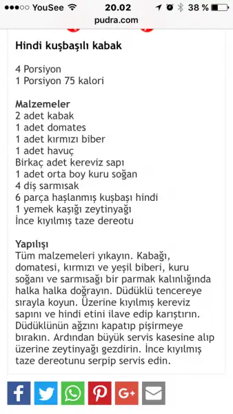 Yemek nasil oldu goruntu gondermedinEki Görüntüle 1962991 Bugün zebzeli yemek olarak bunu seçtim nasıl? Ama ben biraz daha fazla hindi eti koydum 200 gr kadar benim porsiyonum 117 kalori olacak![]()