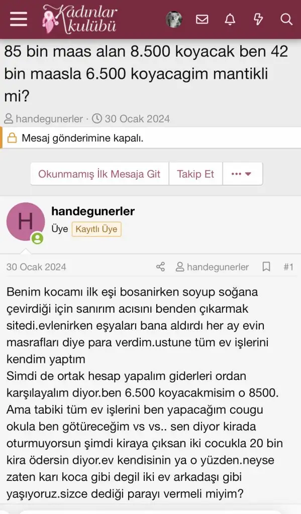 Ya bebek buyuyene kadar evin ihtiyaçlarını o gorecekİşi bıraksanız nasıl geçinmeyi düşünüyorsunuz. Eski konularınız ortada. Arada dönün siz de okuyun isterseniz