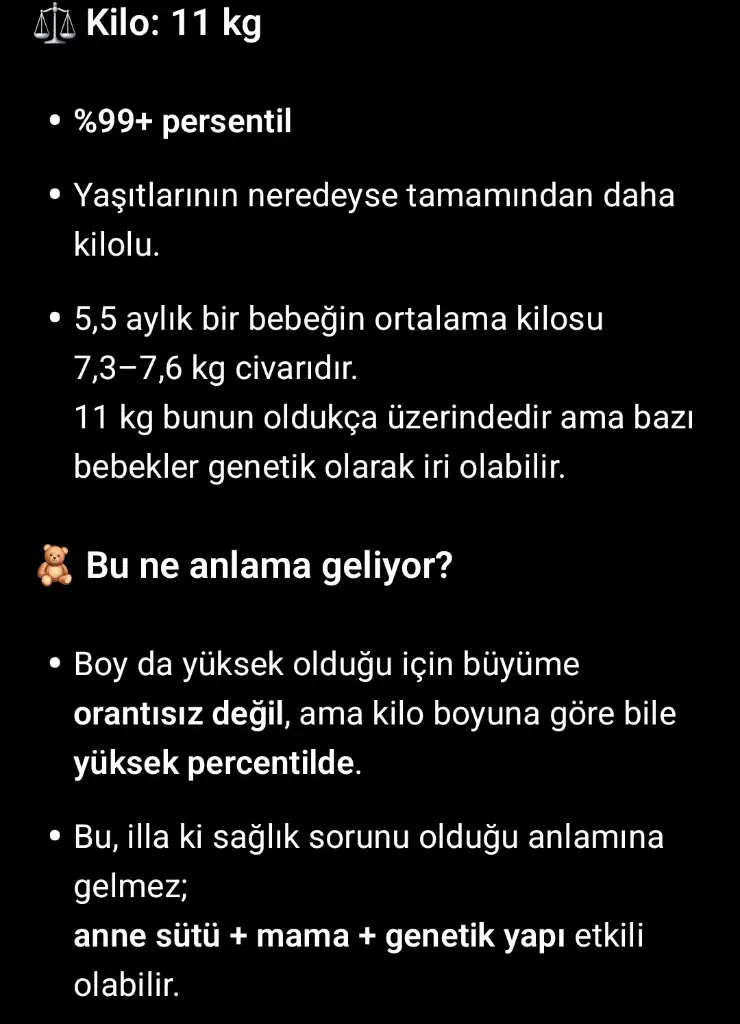 Ama her çocuğun bir max ve min kilo eğrisi vardır ve o sınırların geçilmesini istemez doktorlar . Onun için sadece kilosuyla ilgili bir çocuk doktoruna danışın içiniz rahat olsun .. siz iyi bir annesiniz .. o konuda kimse size birşey diyemez 👍