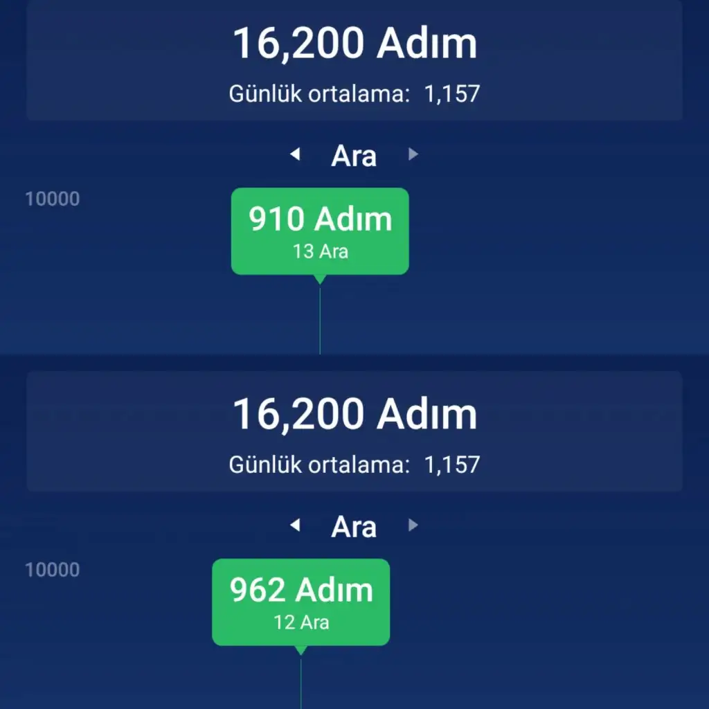 nedenini anlamadigim sekilde 14 aralik 0 adim gorunuyor bugun telefonu hic ayakta elime almamis olamam herhalde.Toplam adım: 59.464