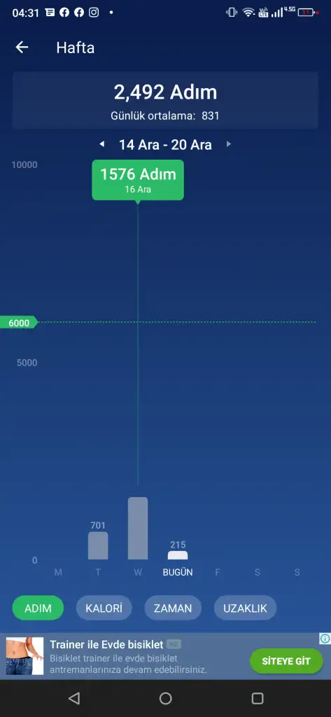Aktivite adı Dakika/Adet Puan Yürüyüş dakika 1 puan Adım sayısı 100 adet 1 puan Leslie dakika 1.5 puan Koşu dakika 4 puan Eliptik dakika 3 puan İp atlama 5 adet 1 puan Jumping Jacks 5 adet 1 puan Zumba dakika 3 puan Cardio dakika 5 puan Jillian dakika 3 puan Yüzme dakika 3 puan Bölgesel egzersizler dakika 2.5 puan Bölgesel egzersizler 10 adet 1 puan Mat pilates dakika 2 puan Reformer pilates dakika 3 puan Yoga dakika 1.5 puan Bisiklet / stepper dakika 3 puan Jessica Smith dakika 2.5 puan Kangoo jumps dakika 3 puan Fitness Blender dakika 3 puan chloe cardio dakika 5 puan aletli egzersiz (salon) dakika 3 puan direnç egzersiz dambıl dakika 4 puan