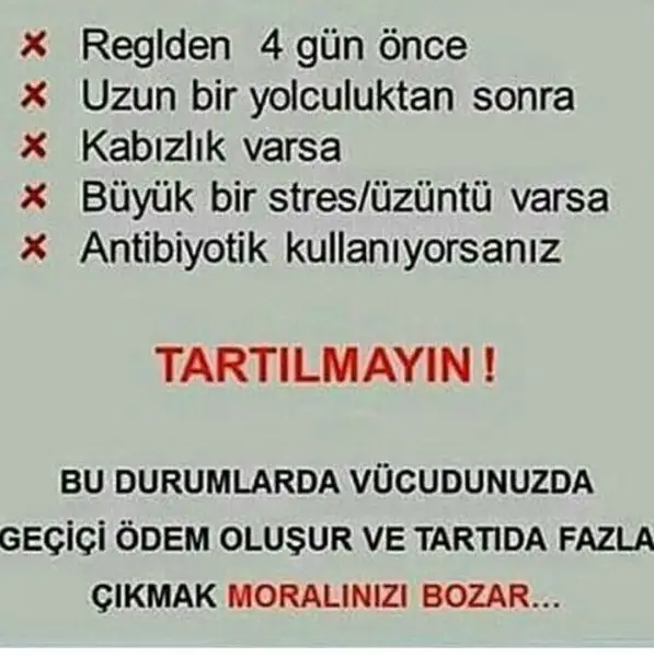 Canim 2 çocuk zaten ister istemez stres yapıyor. Kabızlık ve regl olamam var. Ben de sen bir muddet tartilma kiloyu da at kafanda bak nasıl gidecek kilolar. Ben taa pazartesiden beri tartılmiyorum. Bugün tartilacam ki detoksu etkisi ne kadar göreyim diye.