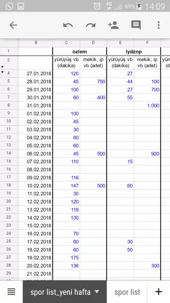 Haftasonu da hep evdeydim. Daha evvel de egzersizlerin not edildiği excel dosyasına erişemiyordum, paylaşımımda bir sorun vardı. Linki tekrardan istemiştim.