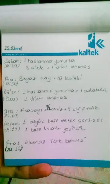 Canım kilo verme grafiğimizin her zaman ekside olması mümkün değil, zaman zaman duraksamalar olabiliyor diyetimize uysak da. Örneğin bende spor yaptığım zamanlarda kas artışı oluyor, yağdan kaybediyorum, tartıda az bir eksi görüyorum belki; ama sıkılaşıyorum çok. Yakın zamanda 1 beden küçüldüm örneğin. 1 beden küçük pantalon alıyorum kendime. Diyetisyen kontrolünde olunca anca onun tartısında bu durumu görebiliyorum. Evdeki tartılarda bunu anlayamıyoruz maalesef.Yok canım regli dönemim bitti. Menülerim aynen yazdığım gibi. Hani kaçamak yapsam ona yoracağım. Çok sinir oldum. Bende anlayamadım. İşte sınırlı yemeye çalışmama yordum ama. Bakalım haftaya da böyle olmaz umarım. Bu hafta çok iyi olmak istedim ama olmadı