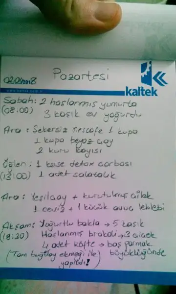 Harikasın. Tebrikler.Eki Görüntüle 2132135 Buraya sığmadı son ara öğün yoğurt sumak kürü 3.5 lt su içtim spor olarak 500 ip atladım ardından 15 dk Zumba yaptım ardından 35 dk kardiyo iş çıkışı bir metro durağı önce indim gün içinde 10000 adımı tamamladım bu günde
