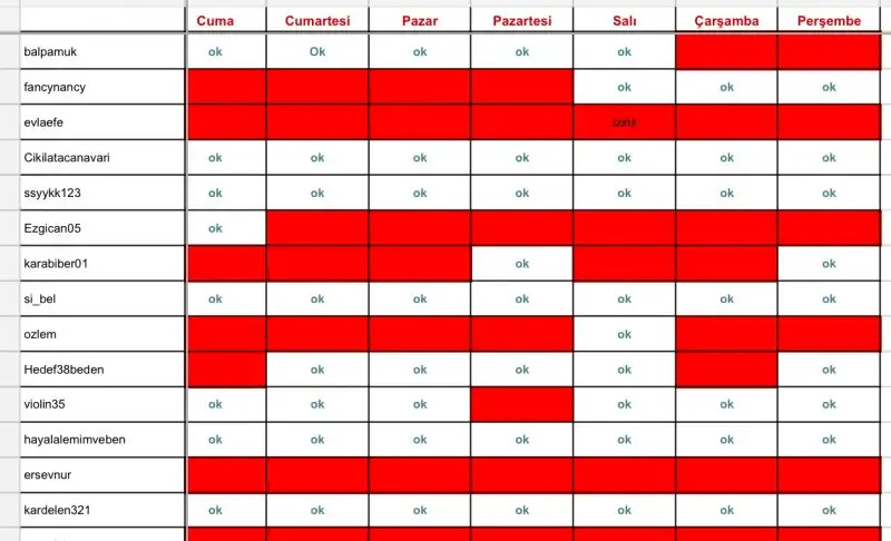 Bu arada hedef listesinni cuma yapsak nasıl olur? Hafta sonu kontrol için iyi olabilir.