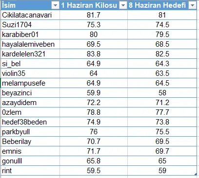 Aynen adetlisi var dimi ama... Bu hafta nasıl olacak bakalım pzt bekliyordum ama süpriz oldu ben yarın tartilirim.