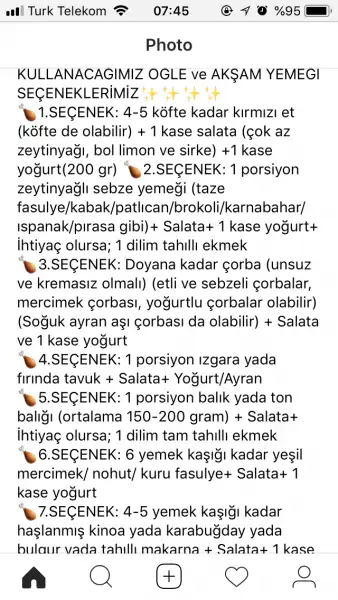 Aksam:biraz tavuk yemeği,1/2kase çorba,bol salata