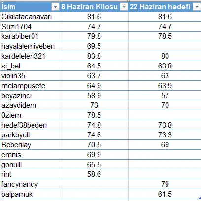 Günaydın kızlar 58,0geldim bugün -900 yani iki hafta önceye göre 0,76 yüzdemin ikiye bölünmüş hali @morordek