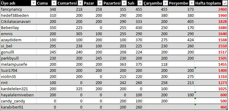 Yüzde birincisini ve haftalık hedef listesini de bildirimler tamamlanınca açıklayacağım
