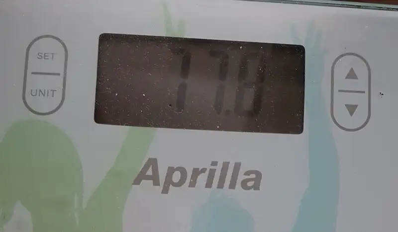 Ve hatta kahve ve su içmeme rağmen 77.8'im..