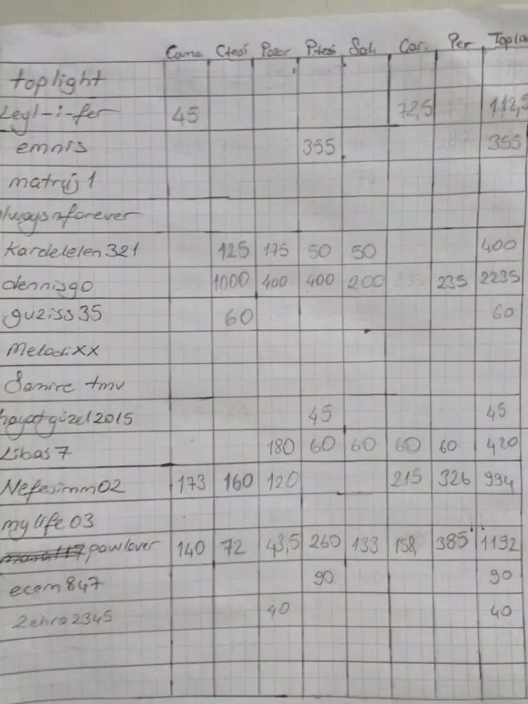 Arkadaşlar bu hafta spor listesi bu şekilde. Eksiklerim görmediklerim olabilir kusuruma bakmayın. toplight toplight kaptanım yürüyüşlerini bildirmedin bu hafta.