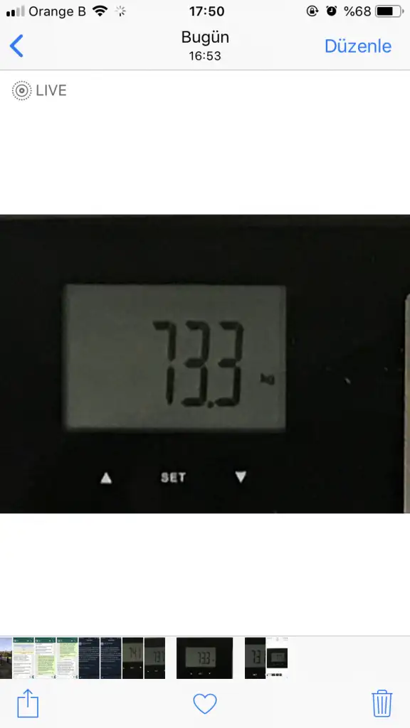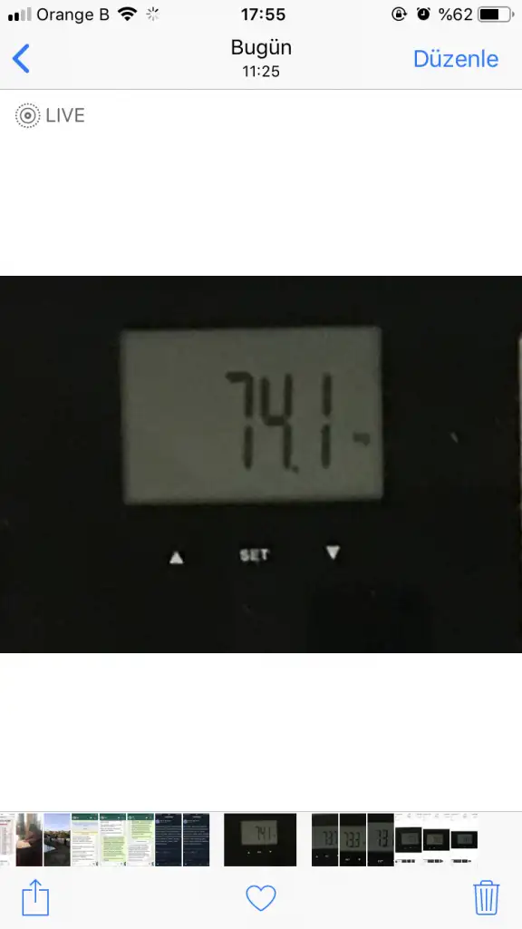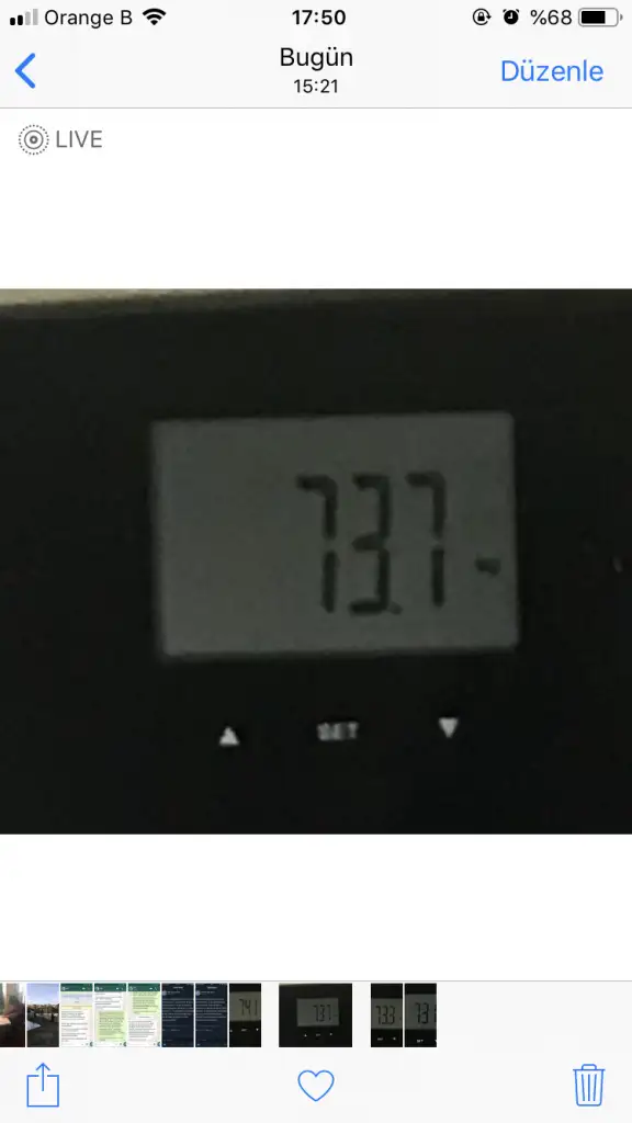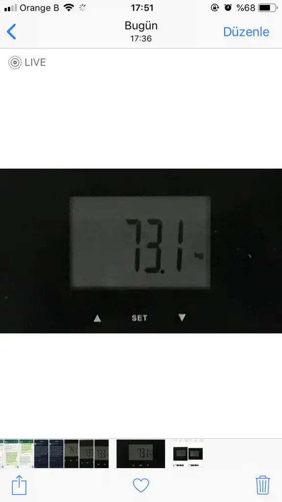 -74,1 e gelirken en büyük etken WC oldu aslında. Bir de 4 er dakikalık 3 set cardio yaptım aralarda dinlenerek. Ödem atıcı içmiştim. Regl olacağımı anlayınca da spora yüklendim
