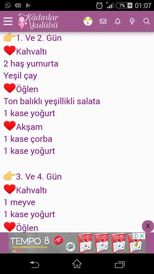 Aynen benim bitmek bilmeyen bir regli var 7. Gün bitmedi cumaya kalmaz herhalde :))))Regli bitenler bitecekler var,tam güzel kilo verilebilicek bi hafta gibi, artı ve sabitte olmazsa derece bile gelebilir denizde sporun dibine vurucak zaten,ne dersiniz kızlarr