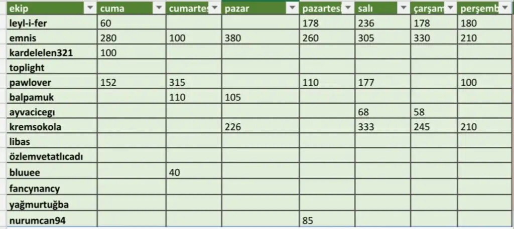 Hepinixi tebrik ederim kizlar muhtesem siniz88 arkadaşlar. Haftalık hedef tuttu çok şükür