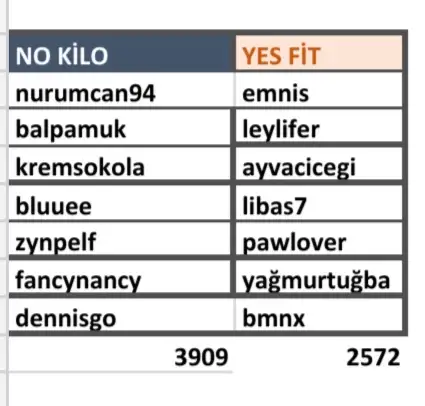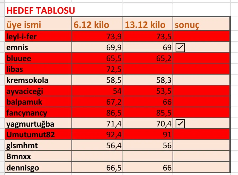 yağmurtuğba(71,4/70,4/1/%1,40)başlangıç tarihi 30 Kasım,başlangıç kilosu 73,hedef kilosu 58