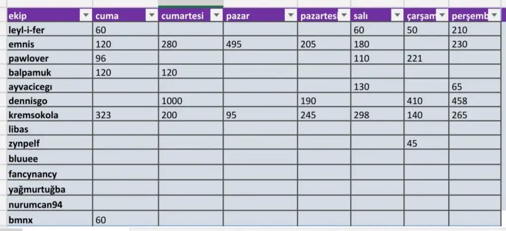 ayvacicegi (54/53,9/0,1/%0,19) 617. etapta 50.8 kg ile bildirimsiz izne ayrıldı.