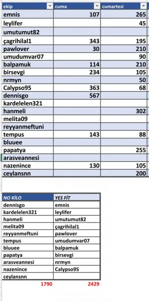 Cuma Zayıflama Yarışması 5. Takım