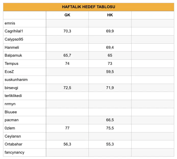 Benim GK 60.3 canım omu yazmamışım HK 59.5Hedefleri yazan ama benim kaçırdığım var mı acabası?