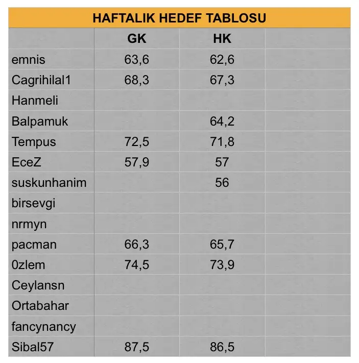 Evt 6. Takım başarılıdır maşallahBen anlamıyorum nasıl veriyorlar hangi gruba baksam 600 700 800 gram eksiler.Artı çıkanlar da var tabi ama 6. takım yine önde götürüyor kadınları çok azimli maşallah kaçamaksız gidiyorlar çoğu zaman. Bizim de öyle olmamız lazım