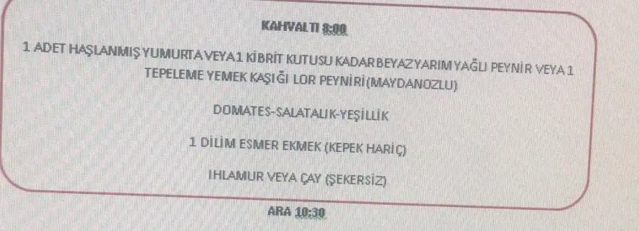 Bu arada gündüz sebze yediysen akşam et, öğlen et yediysen akşam sebze verilir. Bunlar arası değişim yapabilirsin.