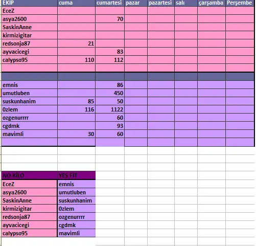 Canımsın ❤Spor yapmayanları çıkardım kızlar sayıda eşitsizlik oluyor gruplar arası yapılırsa hemen eklerim yanlış anlamayın o kısmı ama spor yapın :))