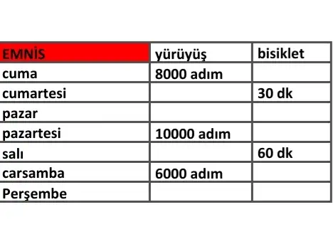 Beğendim çok ama plan yapıp uyamamak da moral bozabilir, ben günleri belirlemeden adım/leslie hedefi koyayım o zaman.Size bahsettiğim kafamdaki egzersiz planı kendime yaptım ilk gün için yakalamaya çalışmak bile zevkliydibakalım cuma günü ne kadarını başarmış olacağım