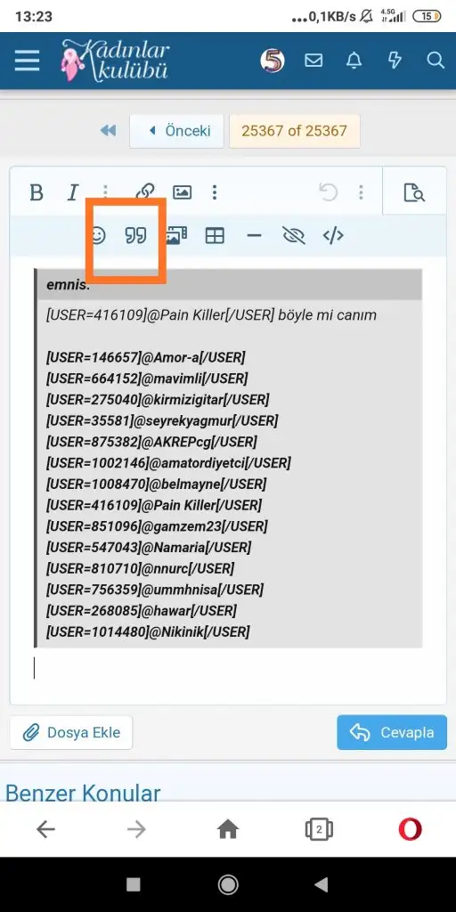Alıntı yaptıktan sonra ekte işaretli alıntı sekmesine basman lazım ardından listenin üzerini 1 kez tikle o şekilde aynen gelir önüne nickler