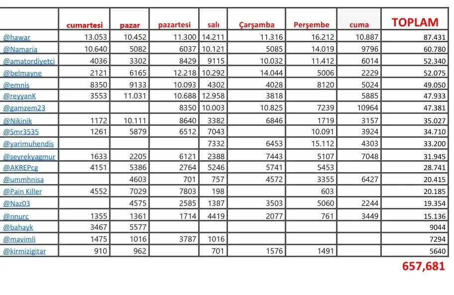 | @amatordiyetci | 4036 | 3302 | 8429 | 9115 | 10.032 | 11.412 | 6014 |