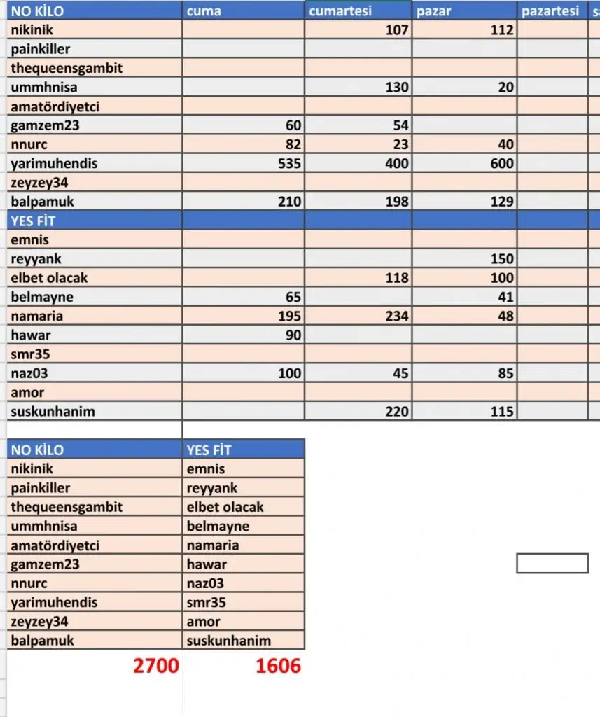 A asilrDeryaOnDiet zafer64 sizlerinde menülerinde spor görünce tabloya ekleyeceğim