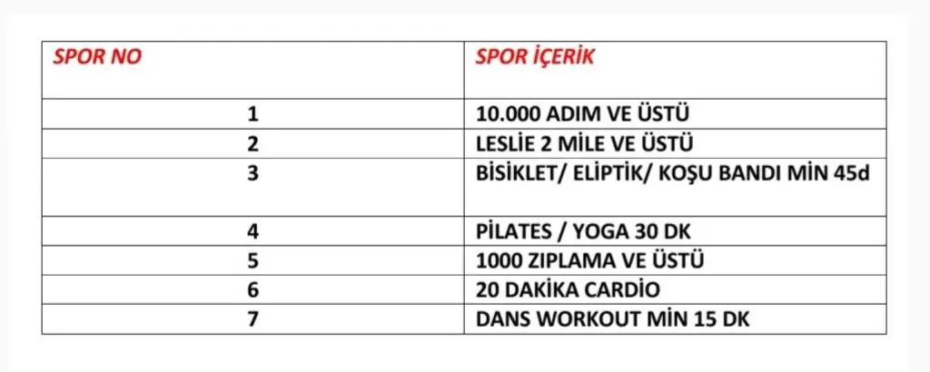 Anladım kuzm tamamPazartesi carsamba cumartesi asagidaki listeye gore yapıyorum canim tabloyu. Diger spor puanlariniCherry Mom kaydediyor.