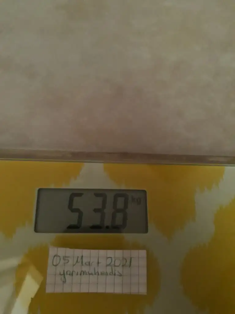 Hadi Hayırlı olsun taze başlangıcın. Azimle, sabırla kurtulalım inşallah fazlalıklarımızdan.Sabah tartı : 102 ,5