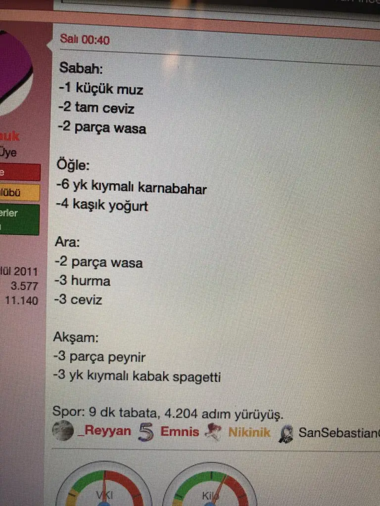 Yine söylüyorum yanlış anlamayın saydıklarımın çoğu anka olsun gamze olsun ummhnisa olsun hastalar zaten onları geçtim diğer kişilerin en azından menü yorumu yapması ortağım nasıl gidiyor demesi spor için yüreklendirmesi lazımdı o yüzden diyorum bu hafta bence kötü denk geldi :/ ama yinede derece almayı bildik