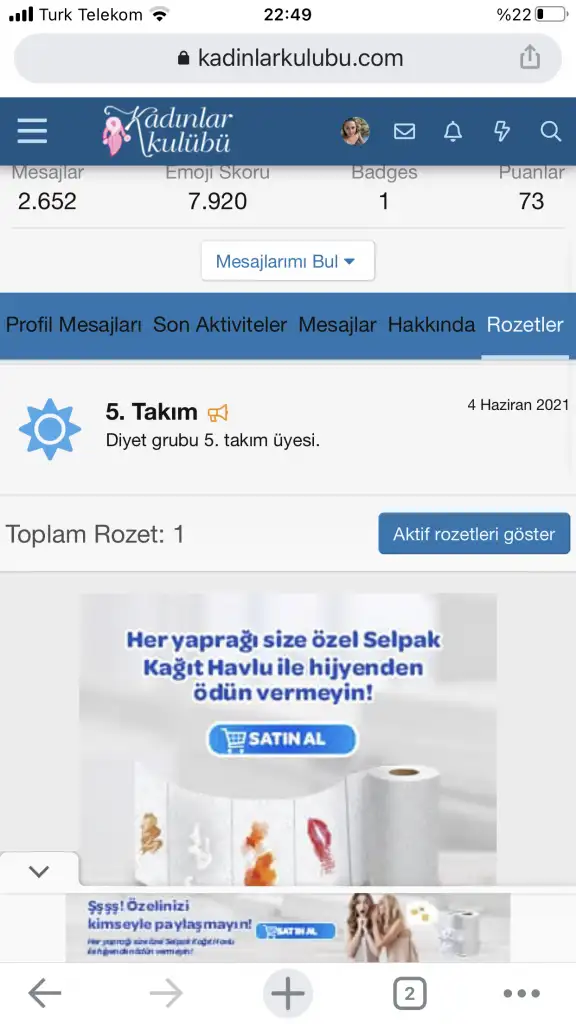 Canım profilinden rozetler bölümüne girYok kaptanım kv bende yemek temizlik derken şimdi girebildim daha sayfayaçarşamba başlayabileceğim spora