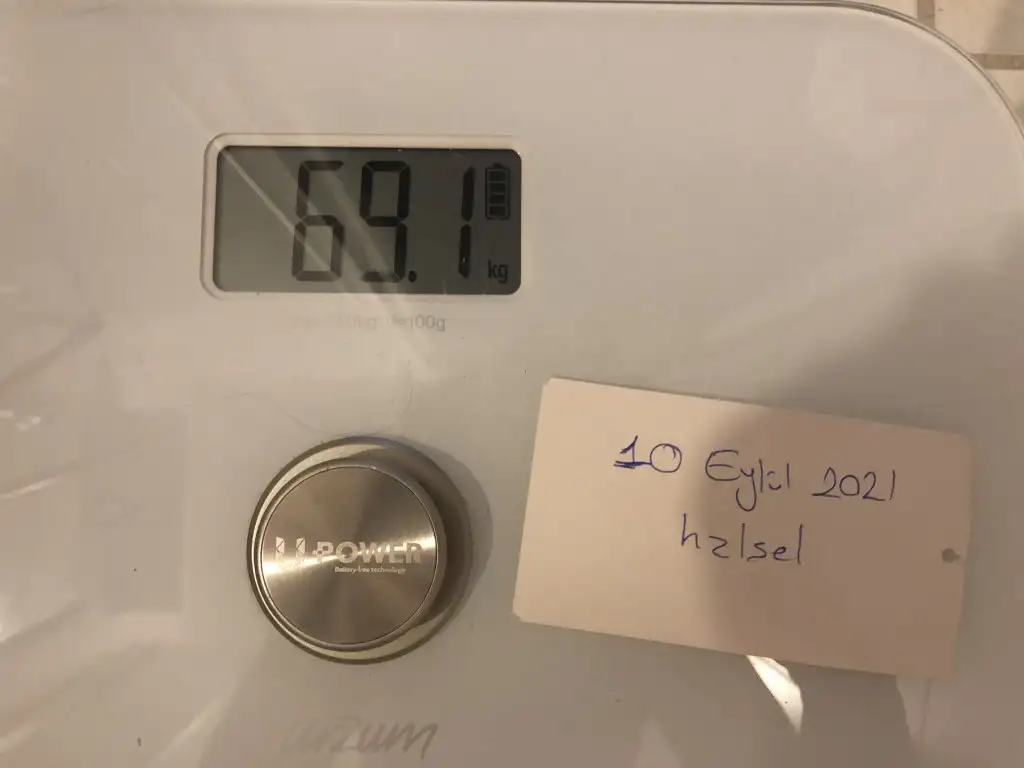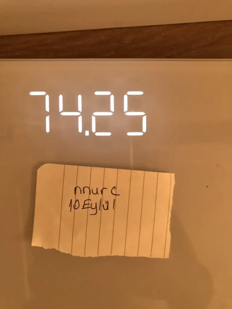 Ya aslinda ben daha cok zayifladim ama evden erken ciktigimiz icin boyle oldu 😅 1 kilo civari gitmisti. Bu tarti sonucu dogruyu yansitmadi pek 😅