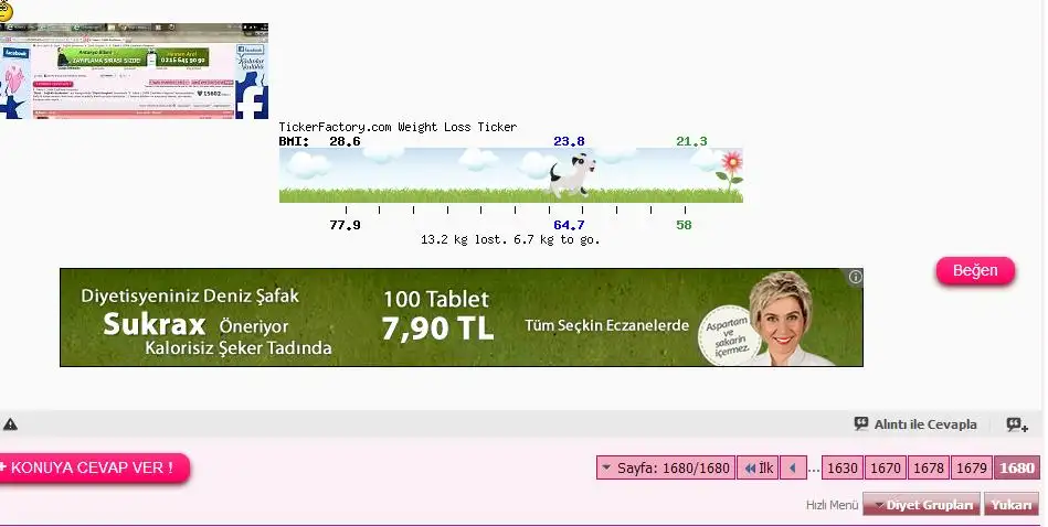 39 yaşındayım 1 yılı aşkın süredir bu diyet işinin içinde çırpınıp duruyorum, önceleri düzenli kilo verirken bu yıl veremez oldum, bunun içinde en büyük sorunum sporu kesmiş olmamdı, yeniden adapte olup spora başlayabilmem zor oldu aylar geçtikten sonra ilk kez geçen hafta yapmaya başladım ve hemen etkisini gördüm inanın sporsuz diyet aylarca sürünseniz işe yaramıyor...umarım sizinle yaptığımız başlangıç hepimiz için iyi olur...evettt nerede kalmıştık, 39 yaşında 3 kız annesiyim, ayrıca 1 kediş 1 de köpüş annessiyimde diyebilirim...