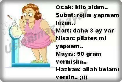 Bununla ilgili yıllar önce kestiğim bir gazete küpürü vardı oradan aklımda kaldığı kadarıyla yılın ilk diyete başlama zamanı Şubat ikincisi Mayıstı. Yani tam zamanındayız gerçi biz daha erken başladık ve Haziran'da kendimize kızmayacağız